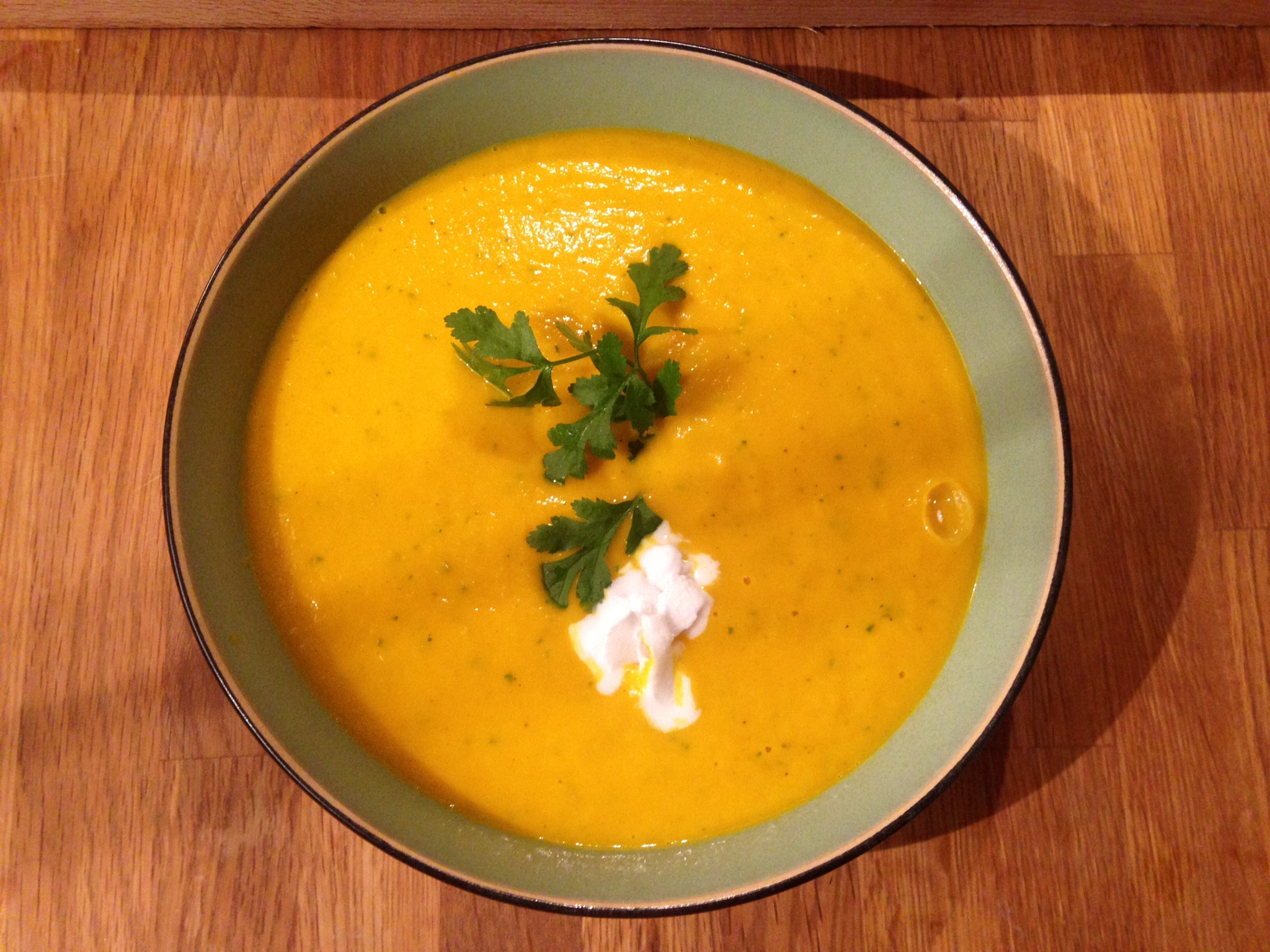 Mijn lunch voor morgenmiddag: een kokoswortelsoepje.