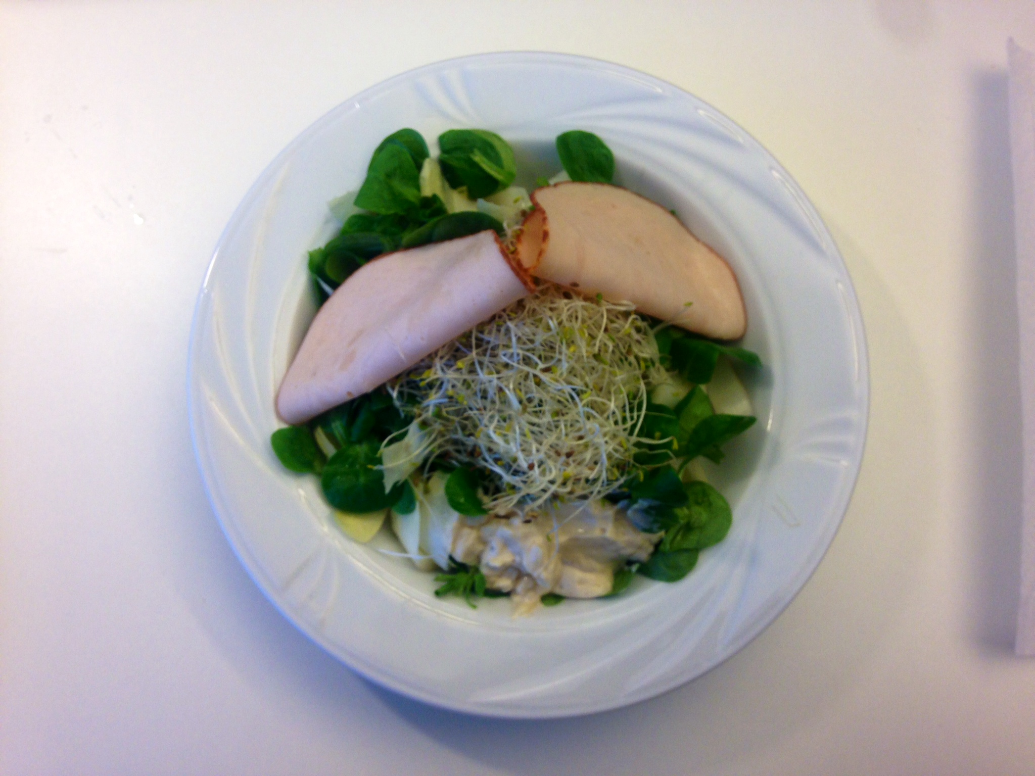 Lunchtime! Deze salade maak ik vaak op het werk nu al deze ingrediënten wel te vinden zijn in iedere supermarkt en nu deze op minder dan 5 minuten gemaakt is (eigenlijk moet je enkel je witloof snijden en de andere ingrediënten toevoegen).