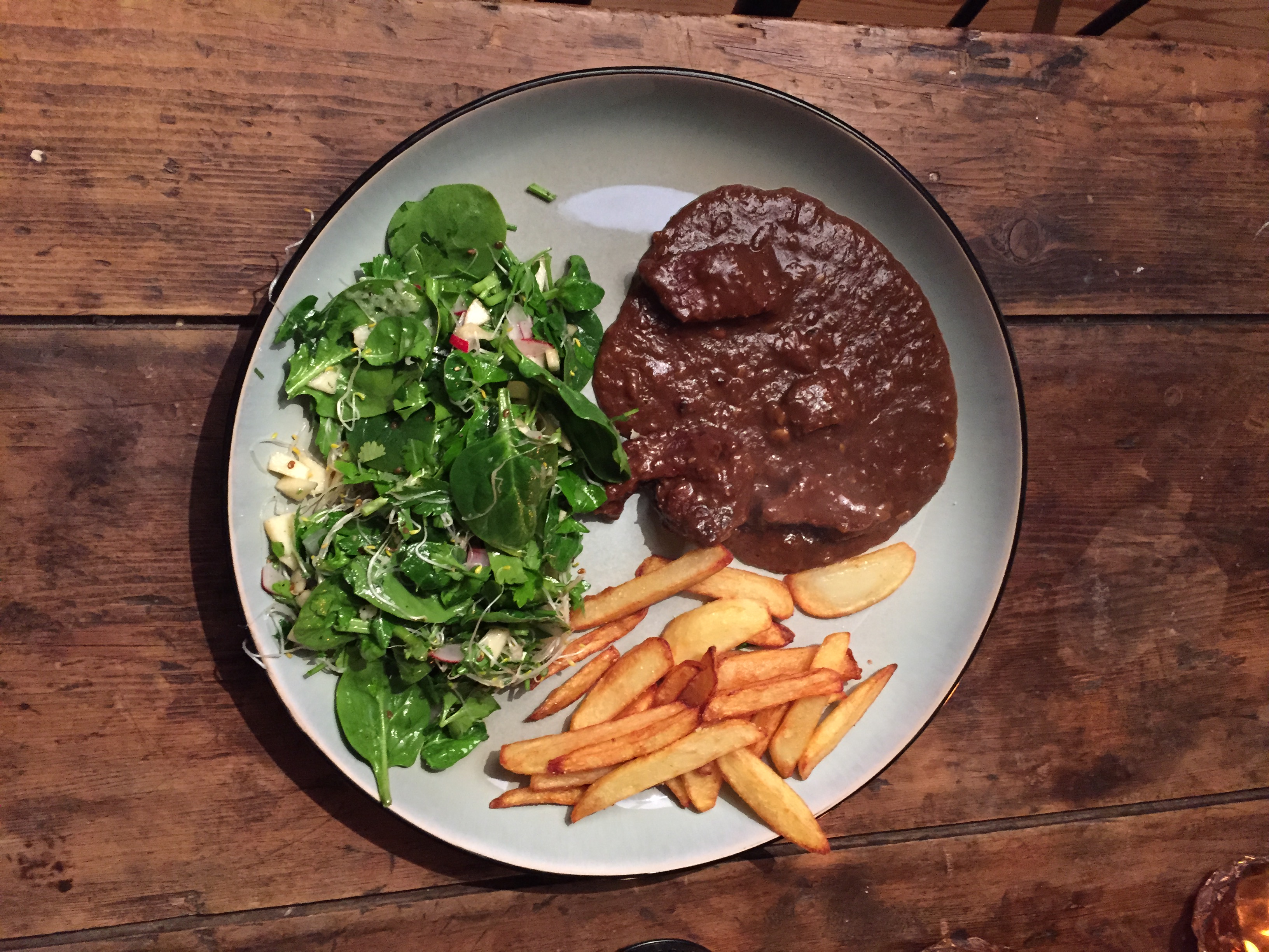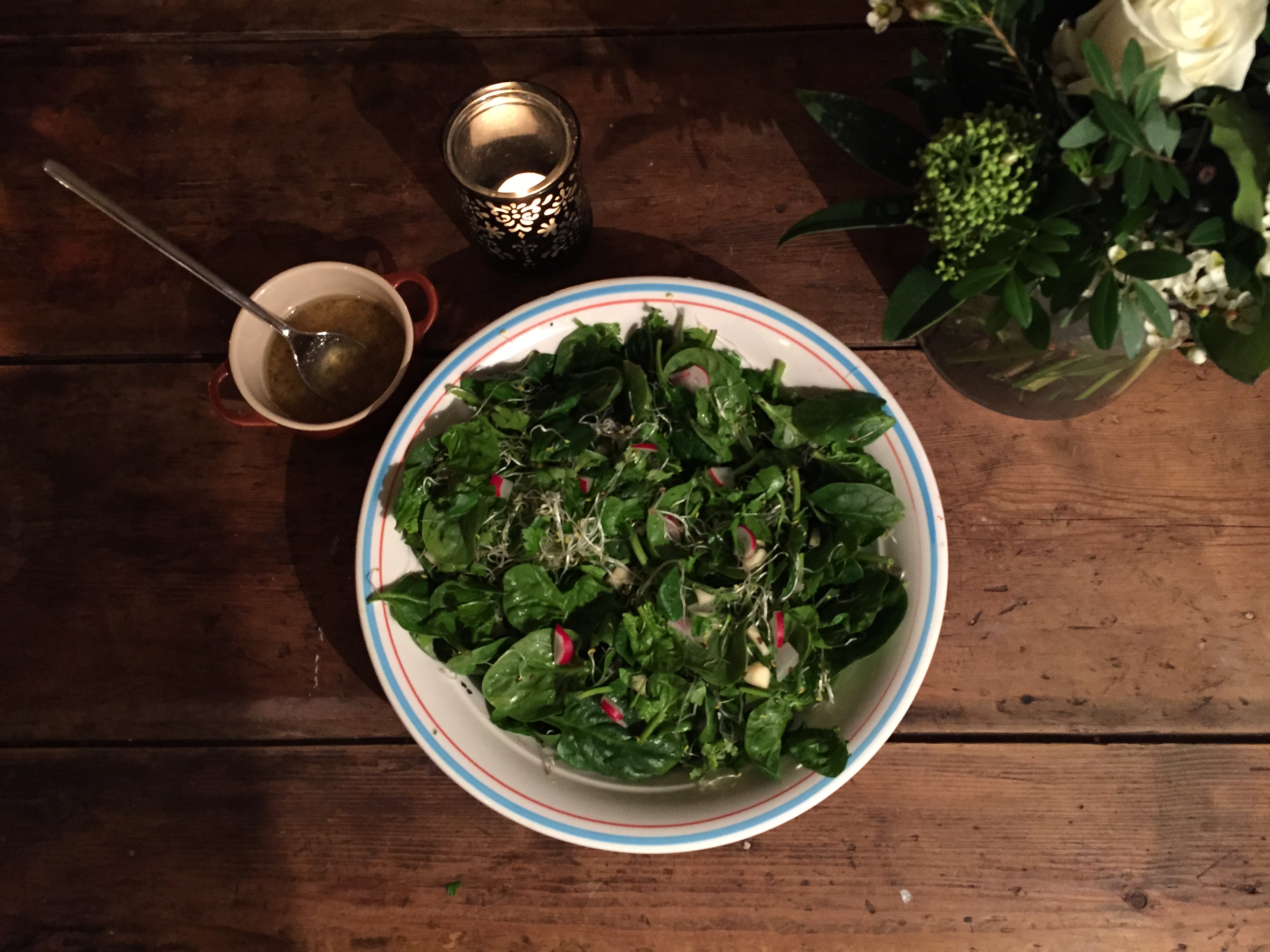 Doe jij nu zondag ook mee aan de nationale dag van het stoofvlees? Omdat stoofvlees met zelfgemaakte frietjes nu niet bepaald het meest gezonde gerecht is, maak ik er wel graag een salade bij. Deze salade met appeltjes en spinazie en een dressing met onder meer appelazijn past hier goed bij. Manlief maakte het stoofvlees.