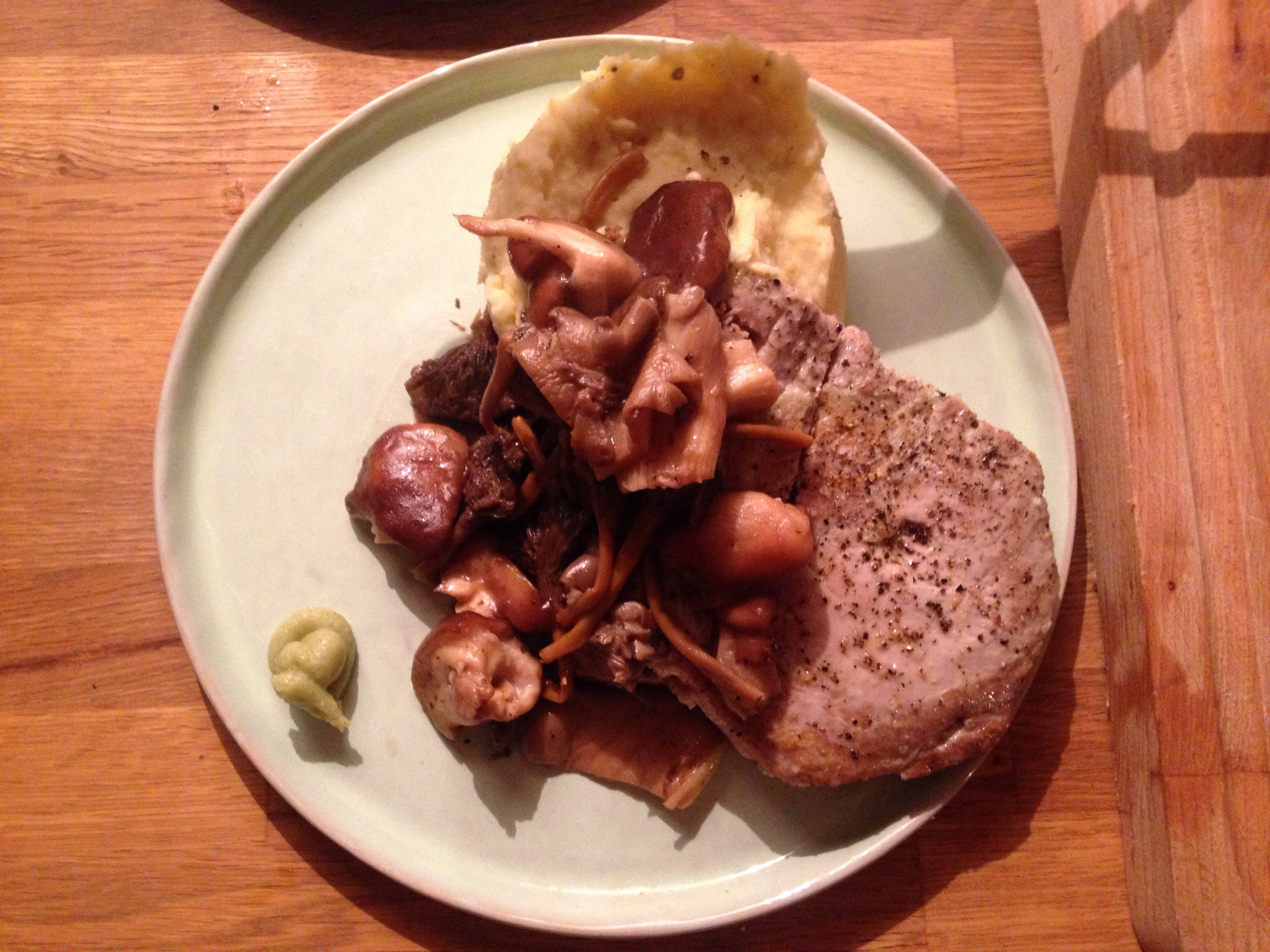 – klontje boter in een aanbakpan bruin laten worden en de champignons hierin kort maar krachtig aanbakken en kruiden met zeezout;