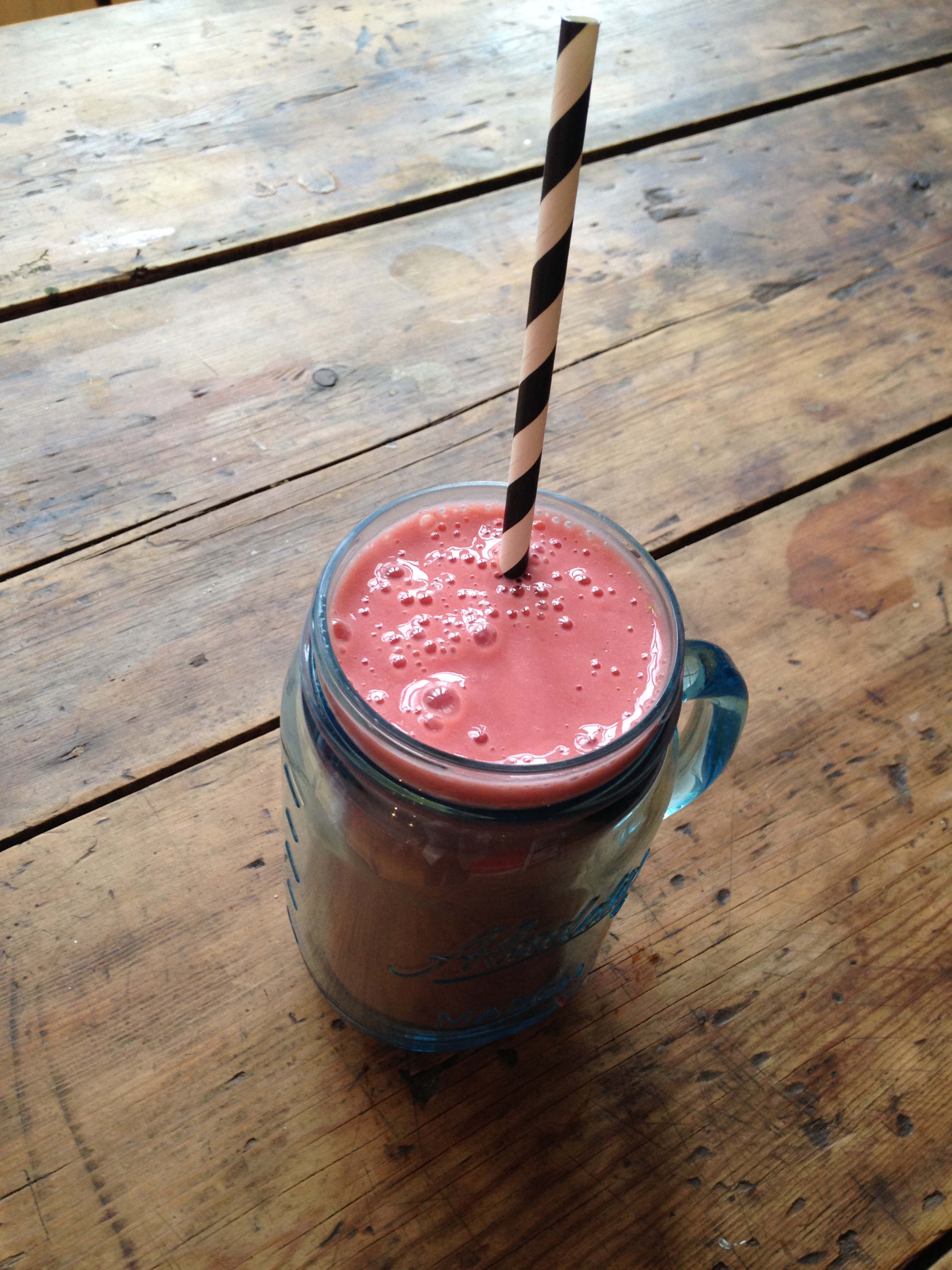 Zin in een vullend gezond tussendoortje ? Probeer dan zeker eens deze smoothie met bloedappelsien, bevroren banaan en aardbei. Deze smoothie kan uiteraard ook dienen als ontbijt. In dat geval zou ik eventueel nog wat haver toevoegen.