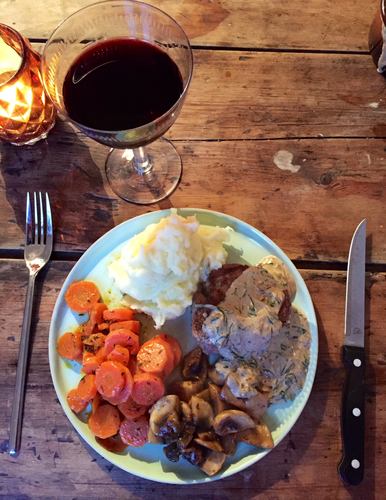Ingrediënten: een klein bakje champignons, peper en zout, klontje boter, champignonbouillon (of groentenbouillon als je er geen kan vinden)
