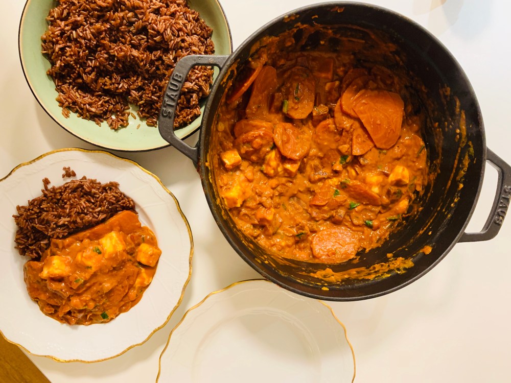 Een receptje van Sandra Bekkari, superlekker (de foto kon beter maar het gerecht is top). Ik serveer er wel rode rijst bij hetgeen het voor mij nog beter (en vullender) maakt.